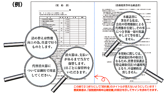 そして「消火器を預りましたので、ここにサインを下さい。」と契約書であることを隠して